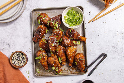 Add some heat to your plant-based meals with our Sweet + Spicy Gochujang Drumsticks, blending savory soy sauce with the bold kick of gochujang and a touch of sweetness. Easy to make and garnished with sesame seeds and green onion, these vegan drumsticks are a flavor-packed delight for any occasion!