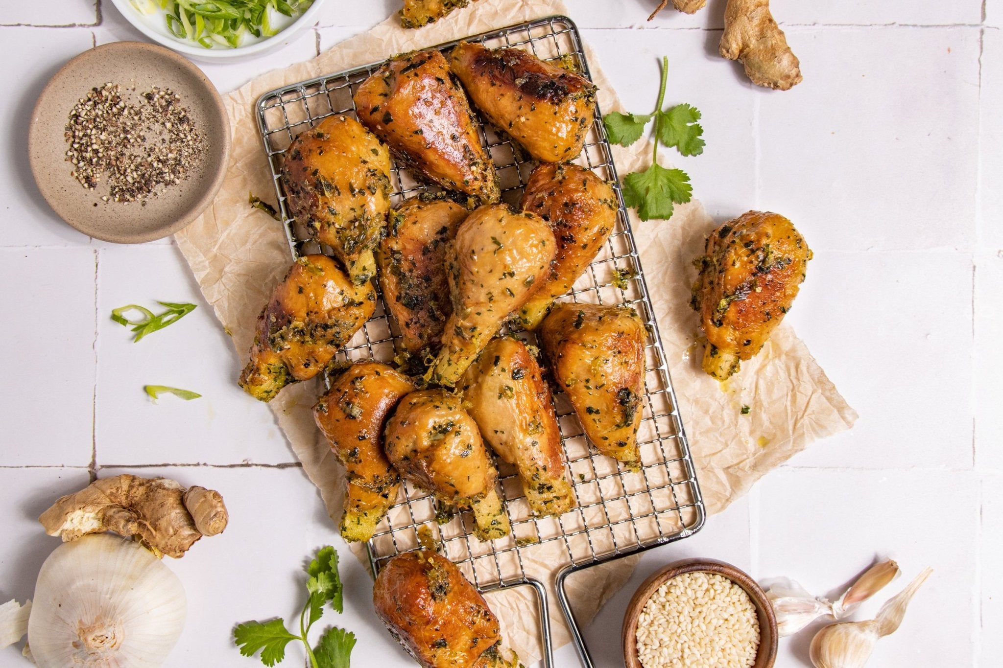 - Place the drumsticks in a bowl and pour the garlic-ginger mixture on top. Toss to coat and serve hot!