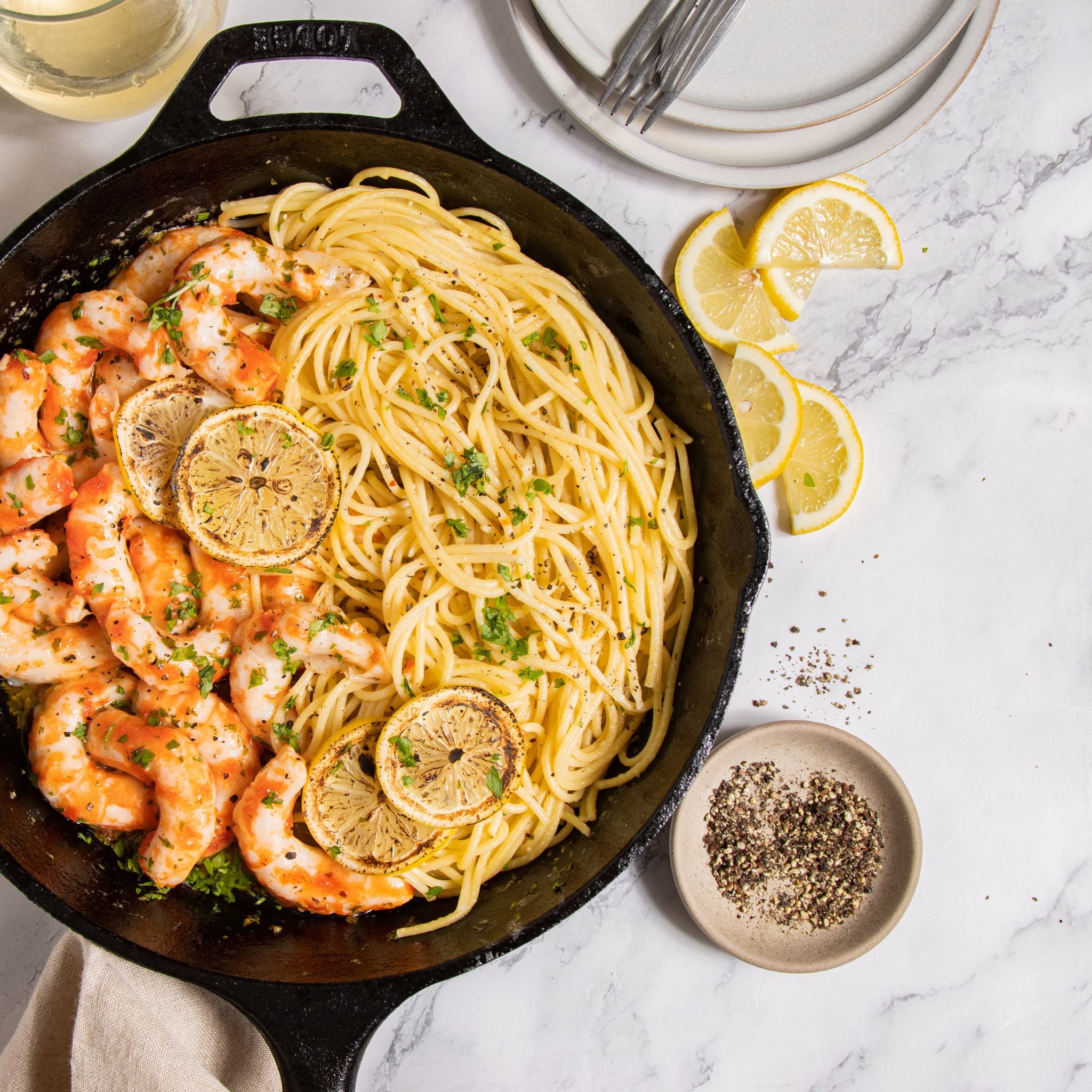 - Add blanched Beleaf Plant-Based Shrimp to skillet.