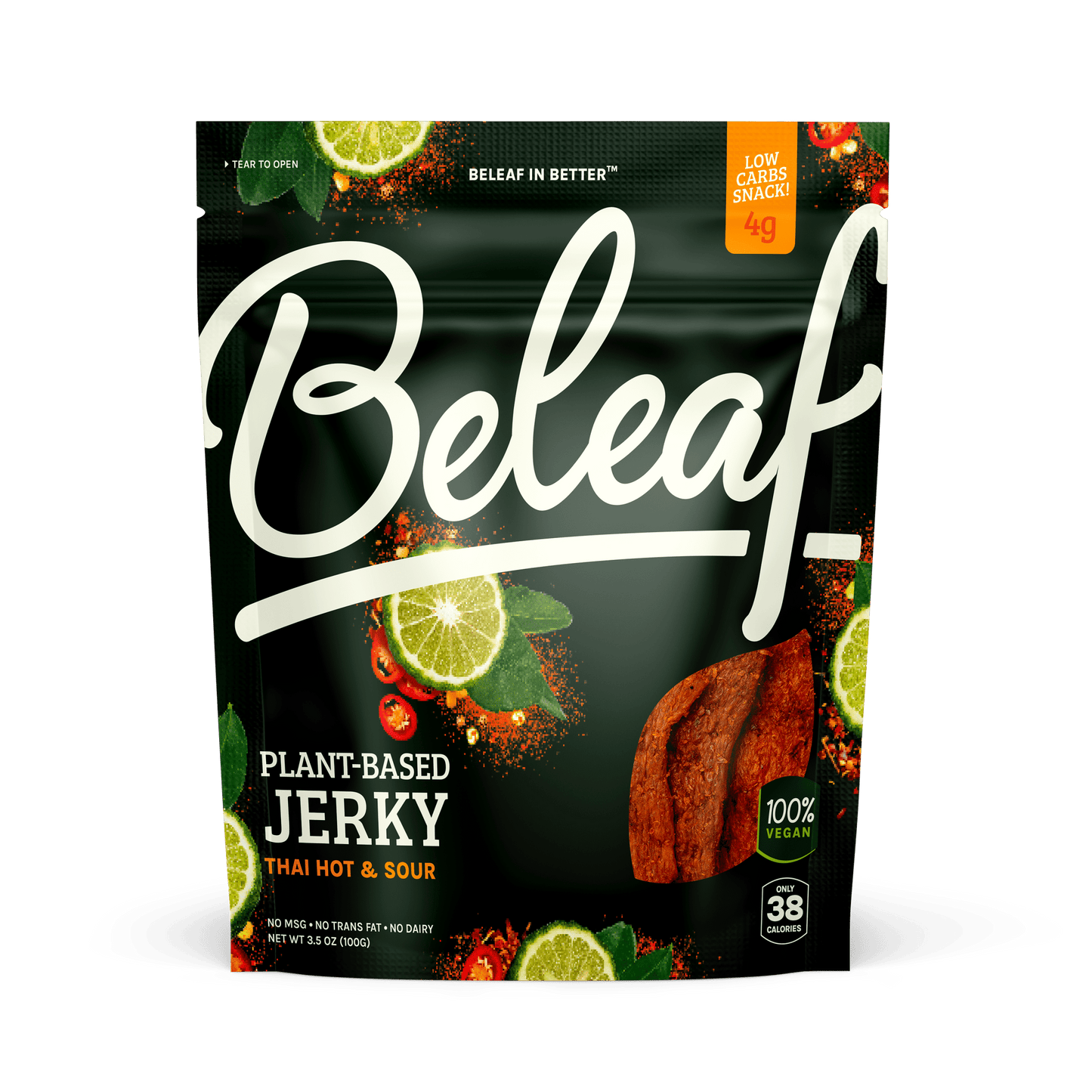 Beleaf Plant-based Thai Hot & Sour Jerky, 3.5 Ounce