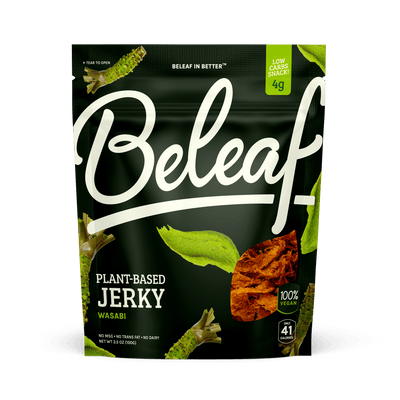 Beleaf's Plant-Based Jerky offers the savory, robust flavors of chili powder, ginger, and black pepper, delivering the authentic taste and texture of traditional beef jerky without the meat. Made with soybean fiber for a wholesome, vegan protein source, this tender, chewy jerky is the perfect plant-based snack to satisfy cravings and enhance your menu!